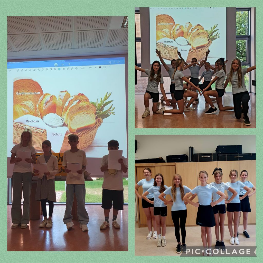Frau Arendes-Meyn begrüßte die Neuzugänge mit Brot und Salz. Die Schülerinnen und Schüler der 6er Klassen überreichten selbstgebastelte Blumen aus dem Textilunterricht und untermalten dies mit einer tollen Geschichte. Auch die Cheerleader der 7b präsentierten einige Ausschnitte ihrer Choreografie.