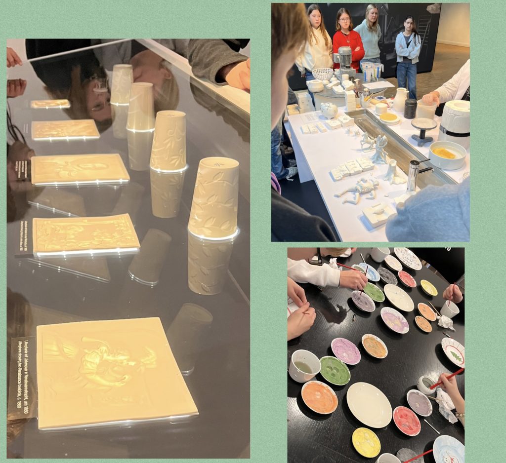 Das Schloss wurde im 18. Jahrhundert gebaut und wurde später zu einer bekannten Porzellanmanufaktur. Porzellan besteht aus Kaolin, Feldspat und Quarz. Die Masse wird geformt und im Ofen sehr heiß gebrannt. Nach dem Brennen wird das Porzellan bemalt. Beim Malen benutzen die Künstler Pinsel aus russischem Eichhörnchenhaar. Wir haben eine kleine Maus aus einer Gipsform gemacht. Am Ende haben wir einen Teller aus Porzellan bekommen und diesen selbst bemalt.