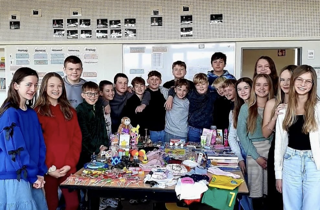 Die Klasse 7b hat in den letzten Tagen mit viel Herz und Engagement Päckchen für den Weihnachtspäckchenkonvoi gepackt. Gemeinsam haben sie Spielsachen, Schreibwaren, Kleidung und kleine persönliche Grüße gesammelt, sortiert und mit Sorgfalt eingepackt. Die Päckchen gehen an Kinder in Osteuropa. Wir freuen uns über den Einsatz, die Zeit und Bereitschaft der 7b, anderen eine Freude zu machen. Nächste Woche werden sie abgegeben. Ihr könnt auch noch ein Päckchen packen!